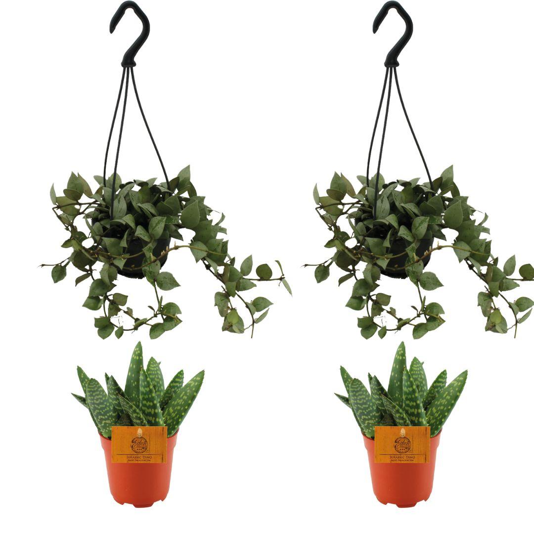 Jede Pflanze kommt in einem Topf mit einem Durchmesser von ca. 10,5 cm (Aloe Paradisicum) bzw. ca. 10 cm (Hoya Krohniana Eskimo Super Silver). Die Pflanzen sind kompakt, aber dennoch ausdrucksstark und langlebig – optimal für ein grünes Zuhause mit wenig Aufwand.