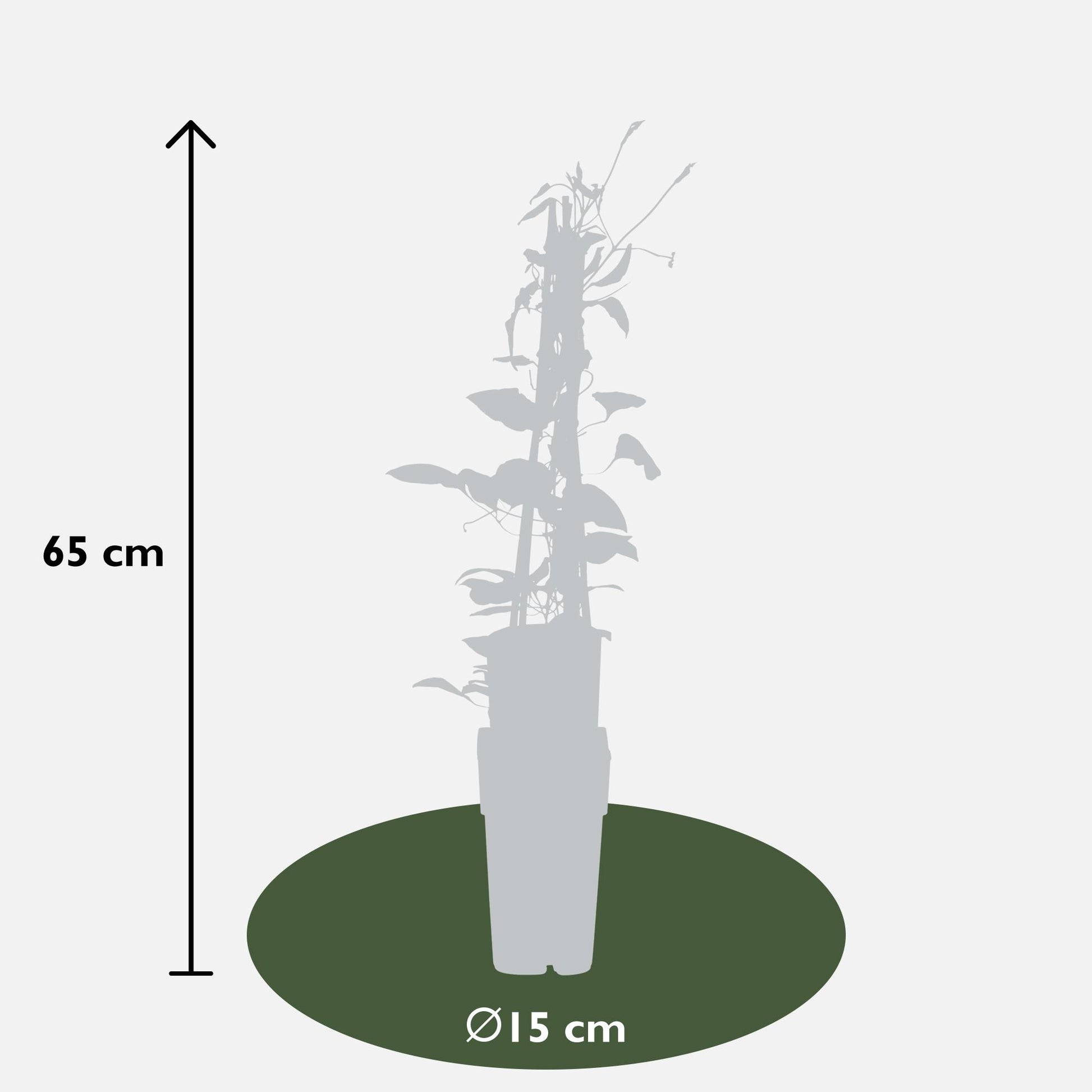 Die Clematis Rouge Cardinal begeistert mit ihren großblütigen, dunkelroten bis purpurroten Blüten, die von Mai bis Juni Ihre Terrasse, Ihren Balkon oder Garten in ein blühendes Paradies verwandeln. Mit einer Wuchshöhe von bis zu 3,5 Metern ist diese Kletterpflanze ein echter Blickfang und verleiht jedem Außenbereich ein modernes, lebendiges Flair.