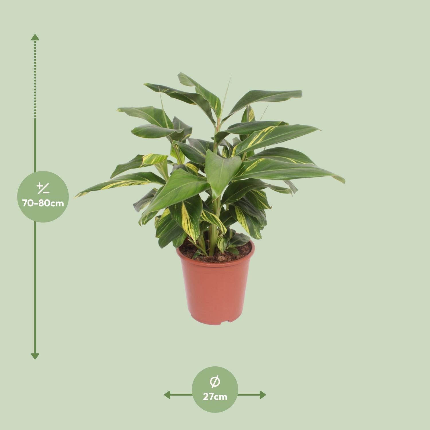 Die Alpinia Zerumbet Variegata ist eine besonders robuste und pflegeleichte Zimmerpflanze, die mit ihrem auffälligen, bunt gemusterten Laub jeden Raum aufwertet. Perfekt für Berufstätige Eltern, Designliebhaber, Senioren und Stadtbewohner, die Wert auf ein modernes, grünes und gesundes Wohnklima legen.
