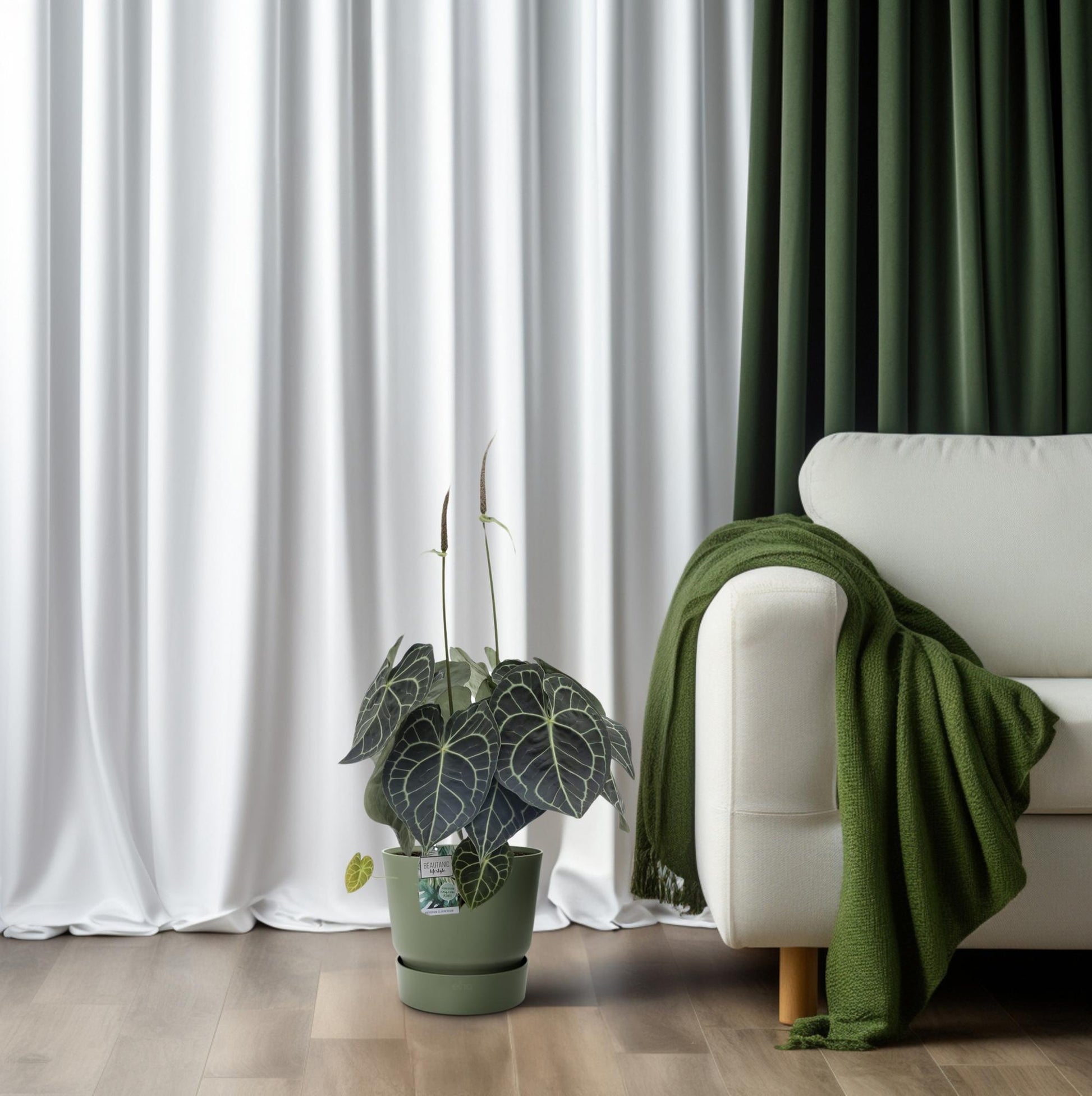 Mit einer Topfgröße von Ø 30 cm und einer Höhe von ca. 80 cm ist das Anthurium Clarinervium ein echter Blickfang. Es verleiht Ihrem Zuhause oder Büro eine elegante, natürliche Atmosphäre und passt perfekt in moderne Wohnkonzepte.