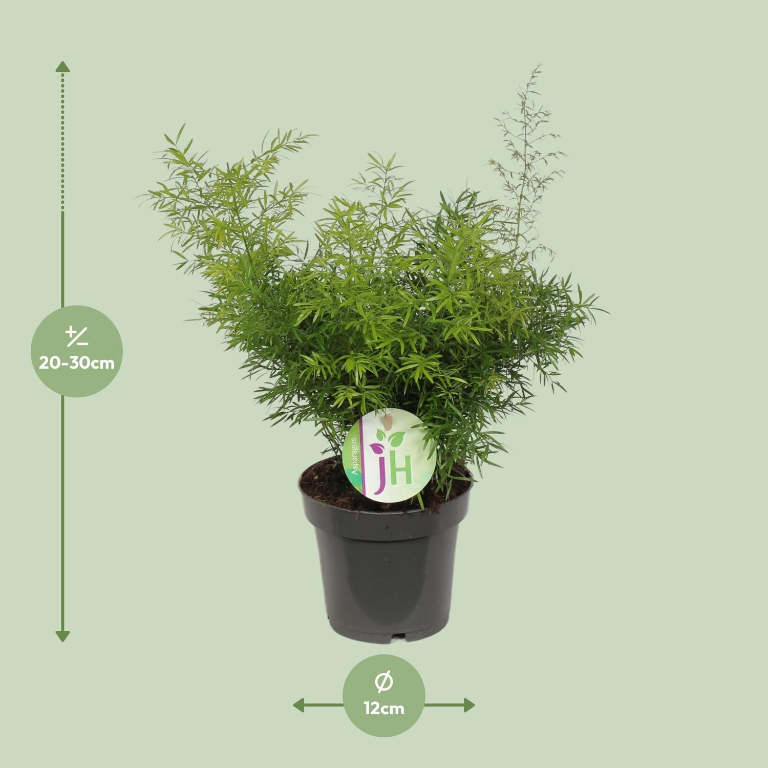 Dieser Spargelfarn wird in einem 12 cm Topf geliefert, perfekt für sofortiges Einpflanzen.Mit einer aktuellen Höhe von etwa 30 cm ist dieser Spargelfarn bereits gut etabliert und bereit, in Ihrem Zuhause zu gedeihen.Präferiert einen Platz im Halbschatten, bringt diese Pflanze einen Hauch von frischem Grün in jeden Raum.Pflegeleicht ist der Spargelfarn eine pflegeleichte Pflanze, perfekt für beschäftigte Pflanzenliebhaber.Mit zarten, federartigen Blättern wird dieser Spargelfarn eine elegante und dekorative Note in Ihren Raum bringen.