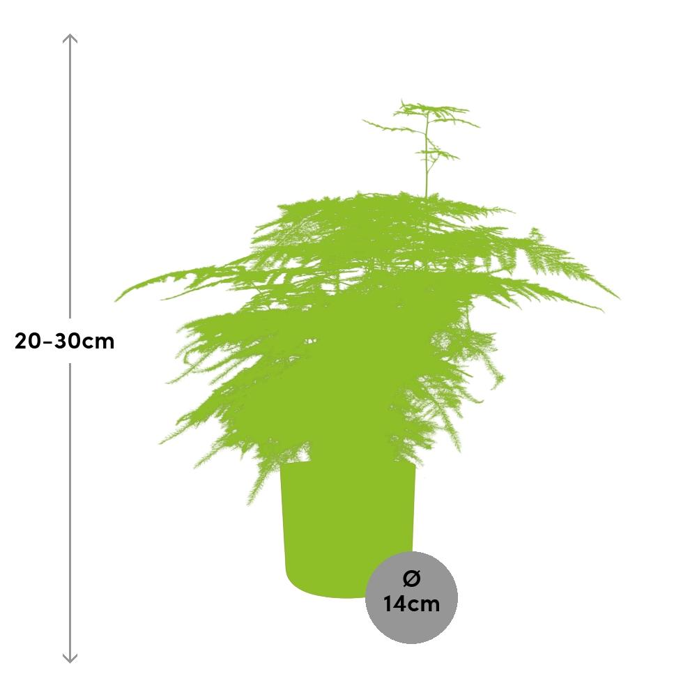 Genießen Sie mit dem Asparagus ‘Plumosus’ eine grüne, trendige und zugleich pflegeleichte Bereicherung für Ihr Zuhause oder Büro.