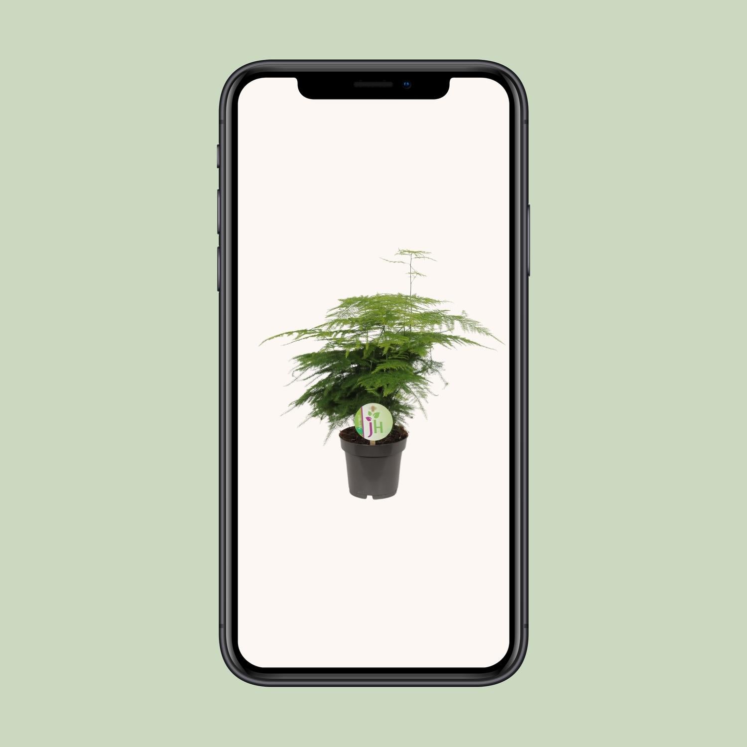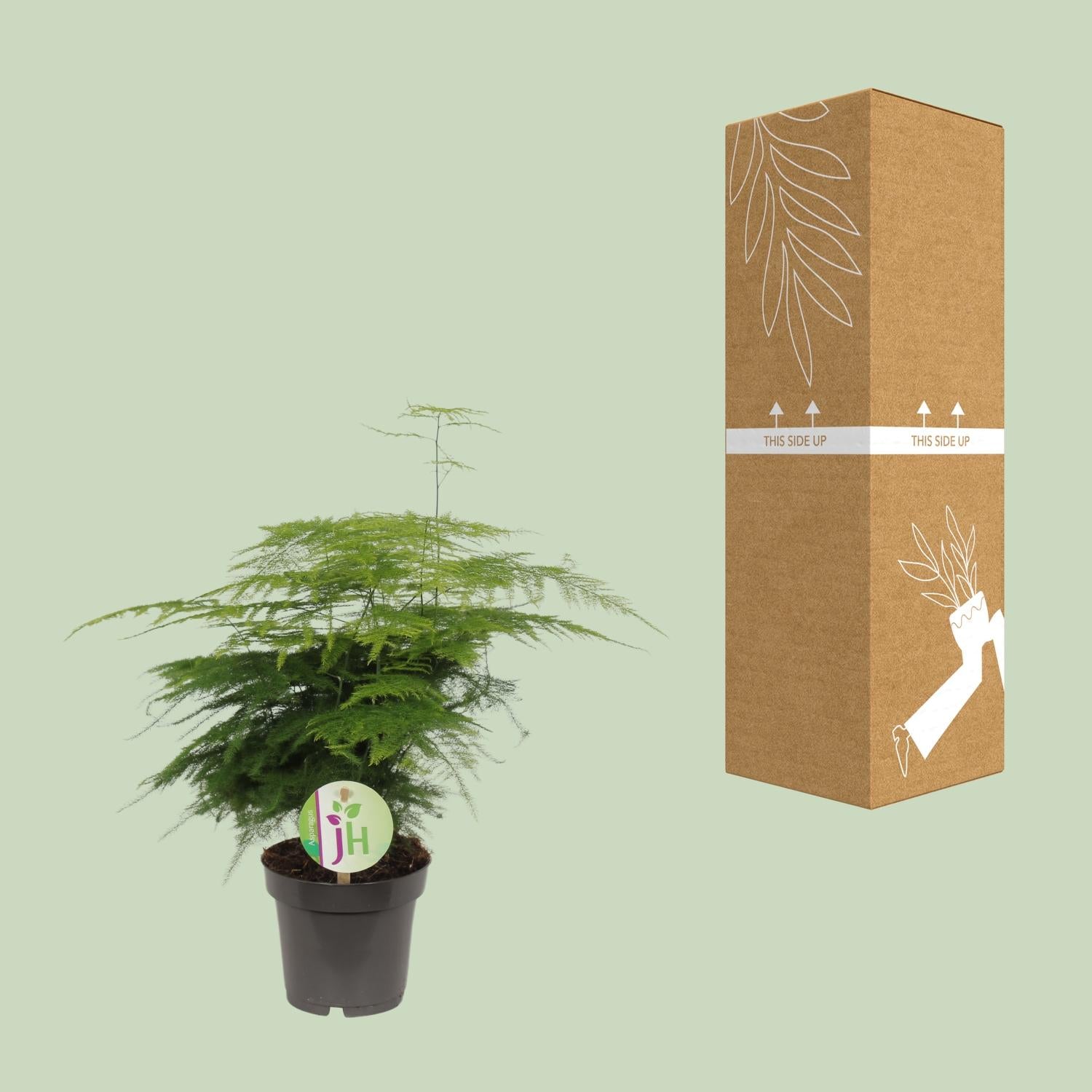 Met zijn fijne, gevederde bladeren en klimmende groei, voegt de Asparagus plumosus een elegante touch toe aan elk interieur. De potmaat van 12 cm biedt voldoende ruimte voor de plant om zich te ontwikkelen en een hoogte van 35 cm te bereiken, waardoor het een geschikte keuze is voor kleinere ruimtes of als onderdeel van een plantenarrangement.