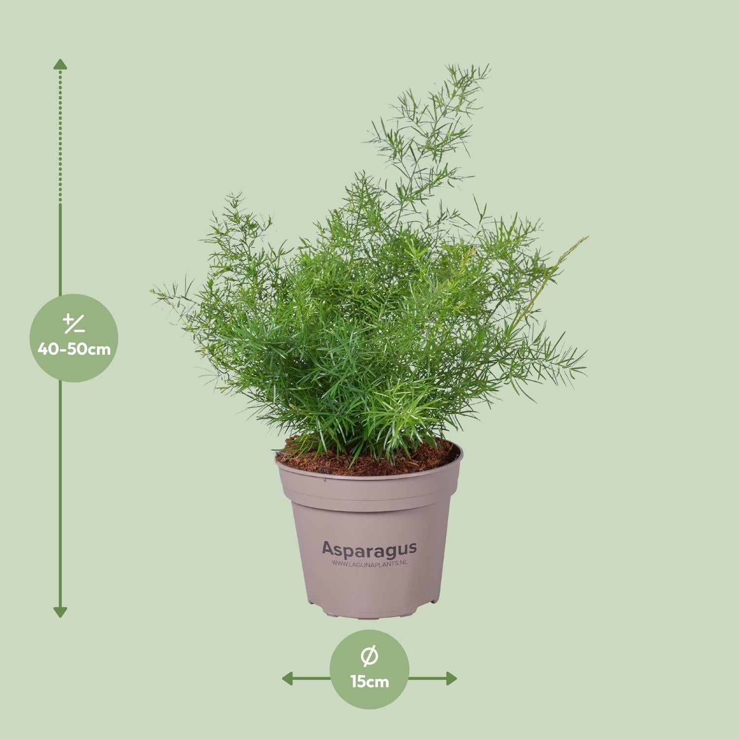 Der Asparagus Sprengeri ist die perfekte Wahl für alle, die eine grüne Oase ohne großen Aufwand schaffen möchten. Mit einem Topfdurchmesser von 15 cm und einer Höhe von ca. 45 cm passt diese Pflanze ideal in jeden Wohnraum – ob Büro, Wohnzimmer oder Balkon.