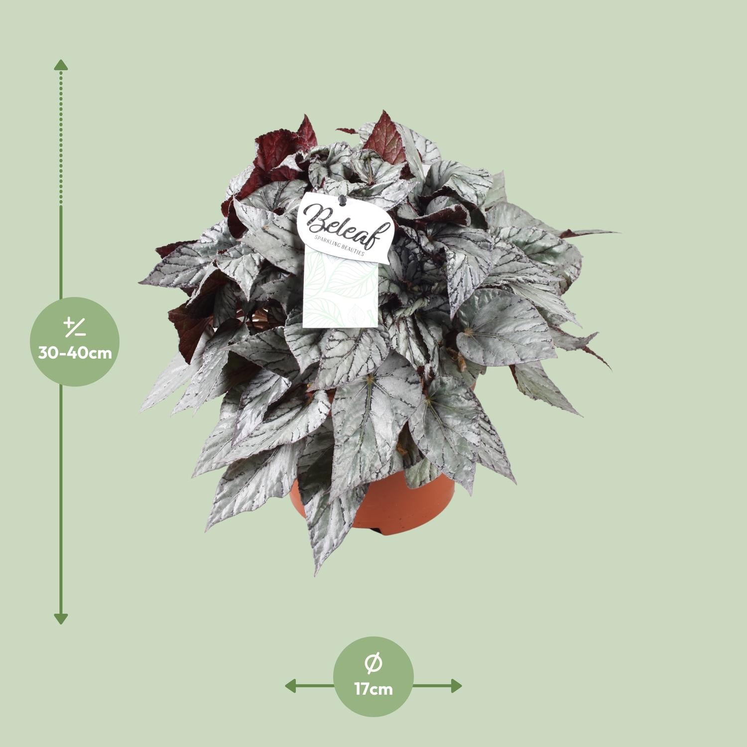 Maak kennis met onze kamerplant Begonia Beleaf Evening Glow! Deze verbluffende variëteit, ook bekend als Begonia, is een echte blikvanger. Met zijn levendige bladeren en unieke kleuren voegt het een vleugje charme toe aan elke ruimte. Deze Begonia is afkomstig van de beste bronnen en gedijt binnenshuis, waardoor het perfect is om je huis of kantoor op te fleuren. Gemakkelijk in het onderhoud en visueel betoverend, onze Begonia Beleaf Evening Glow is een must-have voor plantenliefhebbers. Koop nu en breng een explosie van natuurlijke schoonheid in je leven! Begonia's gedijen goed op een plek met helder, indirect licht, zoals een raam op het zuiden of onder fluorescentieverlichting. Ze hebben regelmatig water nodig, waarbij de grond consistent vochtig moet blijven maar niet verzadigd met water. Begonia's geven de voorkeur aan goed doorlatende grond, dus een mix van potgrond en perliet of zand is ideaal. Bemest de plant elke vier tot zes weken tijdens het groeiseizoen (lente tot herfst) met een gebalanceerde vloeibare meststof. Verdun de meststof volgens de instructies op de verpakking en breng het aan op de grond, wees voorzichtig dat je geen meststof op de bladeren krijgt.Wist je dat de Begonia Beleaf Evening Glow een verbluffende plant is die een vleugje magie toevoegt aan elke ruimte? Met zijn diepgroene bladeren die bezaaid zijn met levendige roze en zilveren vlekken, zal het zeker je aandacht trekken. Het is echter belangrijk om op te merken dat deze prachtige plant alleen voor decoratieve doeleinden is en niet geconsumeerd moet worden. Zijn schoonheid ligt in zijn sierlijke eigenschappen, waardoor het een uitstekende keuze is om je huis of kantoor op te fleuren. Dus ga lekker zitten, ontspan en geniet van het visuele feest dat de Begonia Beleaf Evening Glow te bieden heeft!De Begonia Beleaf Evening Glow heeft een potmaat van 17 cm.De plant is ongeveer 32 cm hoog, waardoor het een compacte en hanteerbare grootte is voor binnenruimtes.Begonia staat ook bekend als Begonia, waardoor het gemakkelijk te herkennen en online te zoeken is.Deze plant gedijt goed in helder maar indirect licht, waardoor het geschikt is voor een plekje bij een raam of in een goed verlichte kamer.Leuk feitje: Begonia's zijn populair vanwege hun levendige en kleurrijke bladeren, die tinten roze, rood, groen en zilver kunnen hebben.