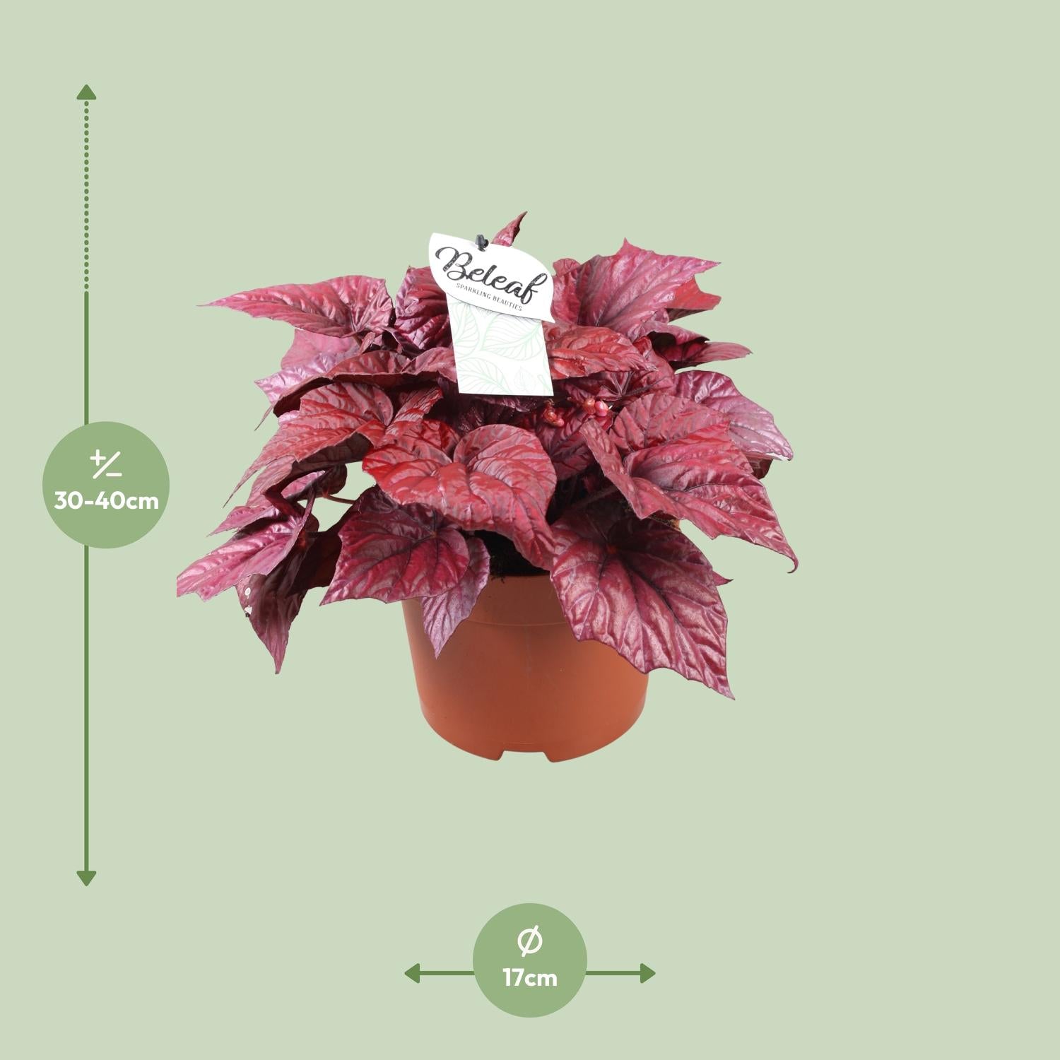 Vorstellung der atemberaubenden Begonia Beleaf Inca Flame, die perfekte Zimmerpflanze, um jedem Raum eine gewisse Schönheit zu verleihen. Auch bekannt einfach als Begonia, stammt diese fesselnde Pflanze aus den tropischen Regionen und bringt eine lebendige Explosion von Farbe und Wärme in Ihre Umgebung. Ihr außergewöhnliches Laub mit feurig roten und grünen Blättern ist ein wahrer Anblick und zieht mühelos Aufmerksamkeit auf sich und erobert Herzen im Sturm. Ideal für Zimmergartenliebhaber verspricht diese SEO-optimierte Begonia Beleaf Inca Flame, Ihr Interieur mit ihrem einzigartigen Charme und ihrer pflegeleichten Natur zu beleben. Holen Sie sich jetzt Ihre und genießen Sie die Schönheit der Natur in Ihrem Zuhause! Um sich um Begonien zu kümmern, platzieren Sie sie an einem Ort mit hellem indirektem Licht, wie in der Nähe eines Nord- oder Ostfensters. Regelmäßiges Gießen ist wichtig, um sicherzustellen, dass die Erde feucht, aber nicht durchnässt ist. Begonien gedeihen in gut drainierender Erde, die reich an organischem Material ist. Verwenden Sie eine torfbasierte Blumenerde für optimales Wachstum. Düngen Sie die Pflanze während der Wachstumsphase alle 2-4 Wochen mit einem ausgewogenen flüssigen Dünger, der auf die halbe Stärke verdünnt ist. Verringern Sie jedoch die Düngung während der Ruhephase im Winter.Wusstest du, dass die Begonia Beleaf Inca Flame wie ein feuriger Blickfang in deinem Garten ist? Ihr lebhaft rotes und oranges Laub ähnelt flackernden Flammen und verleiht jedem Raum eine Prise Aufregung und Drama. Es ist jedoch wichtig zu beachten, dass diese schöne Pflanze nur zur Dekoration dient und nicht verzehrt werden sollte. Also, obwohl es verlockend aussieht, widerstehe dem Drang, von dieser wunderbaren Pflanze zu naschen und lass sie weiterhin auf sichere und freundliche Weise deine Umgebung erhellen!Die Begonia Beleaf Inca Flame ist eine beliebte Pflanze mit einem Topf von 17 cm Größe.Diese Pflanze wächst typischerweise auf eine Höhe von etwa 32 cm und eignet sich daher hervorragend, um Ihrem Innen- oder Außenbereich eine vertikale Attraktion hinzuzufügen.Die Begonia Beleaf Inca Flame wird auch oft einfach als Begonia bezeichnet, was ihre weite Anerkennung und Beliebtheit unter Pflanzenliebhabern zeigt.Diese spezielle Begonienart gedeiht in gut beleuchteten Bereichen und eignet sich daher perfekt für helle Plätze in Ihrem Zuhause oder Garten.Wussten Sie schon? Begonien sind bekannt für ihr atemberaubendes Blattwerk, das in einer Vielzahl von Farben und Mustern vorkommen kann, darunter leuchtendes Rot, Pink und Grün!