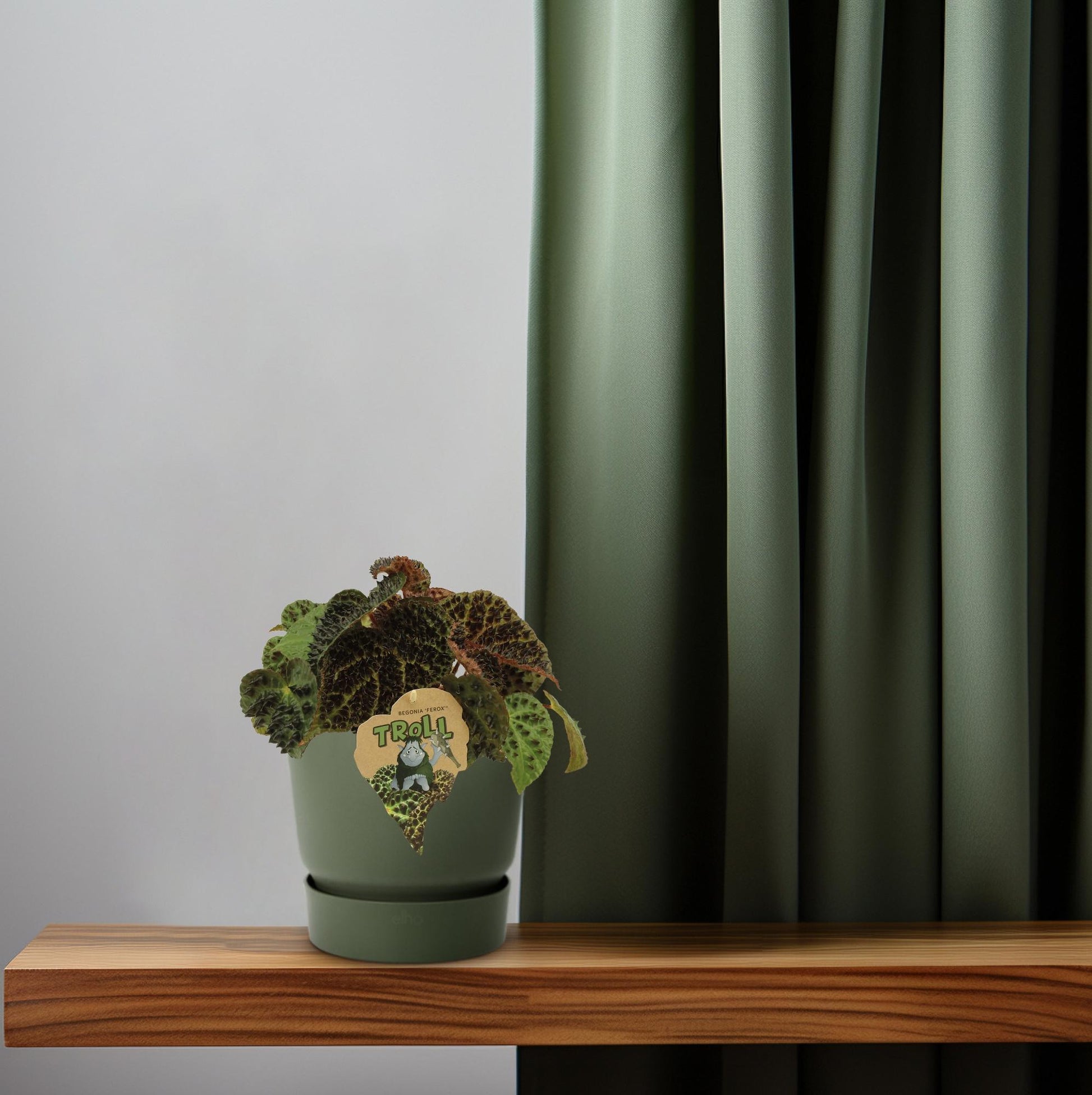 Mit ihren lebendig grünen Blättern und zarten, asymmetrischen Blüten verleiht diese Begonie jedem Innen- oder Außenbereich eine elegante Note.