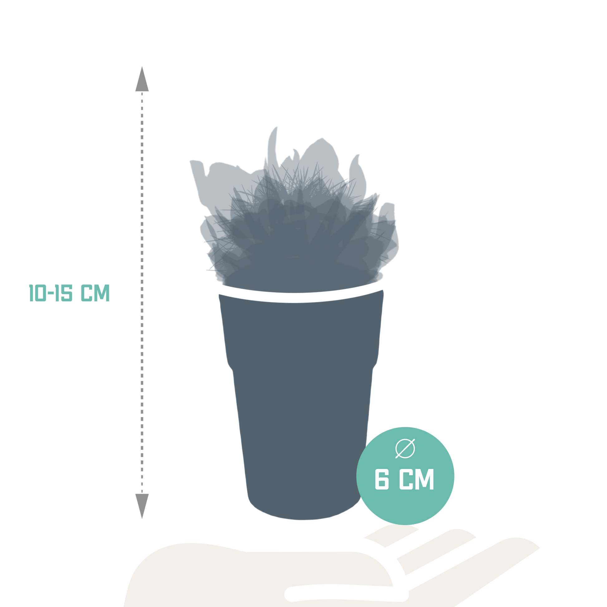 Was für eine MEGA-Mischung ist das! Diese Mischung besteht aus nicht weniger als 15 Kakteen und Sukkulenten, die sich in Farbe, Höhe und Form unterscheiden. Von Cereus bis Echeveria und von Haworthia bis Crassula ist alles in dieser Mischung enthalten. Alle Pflanzen in dieser Mischung stammen direkt vom Züchter und sind daher von höchster Qualität. Diese Mischung wird in einem stabilen farbigen Plastiktopf geliefert.