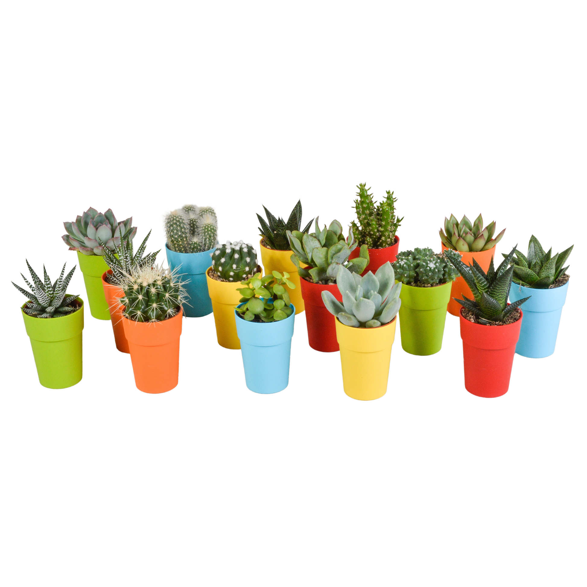 Cactus en vetplanten Mischung 5,5 cm | 15 stück - in gekleurde plasticpot