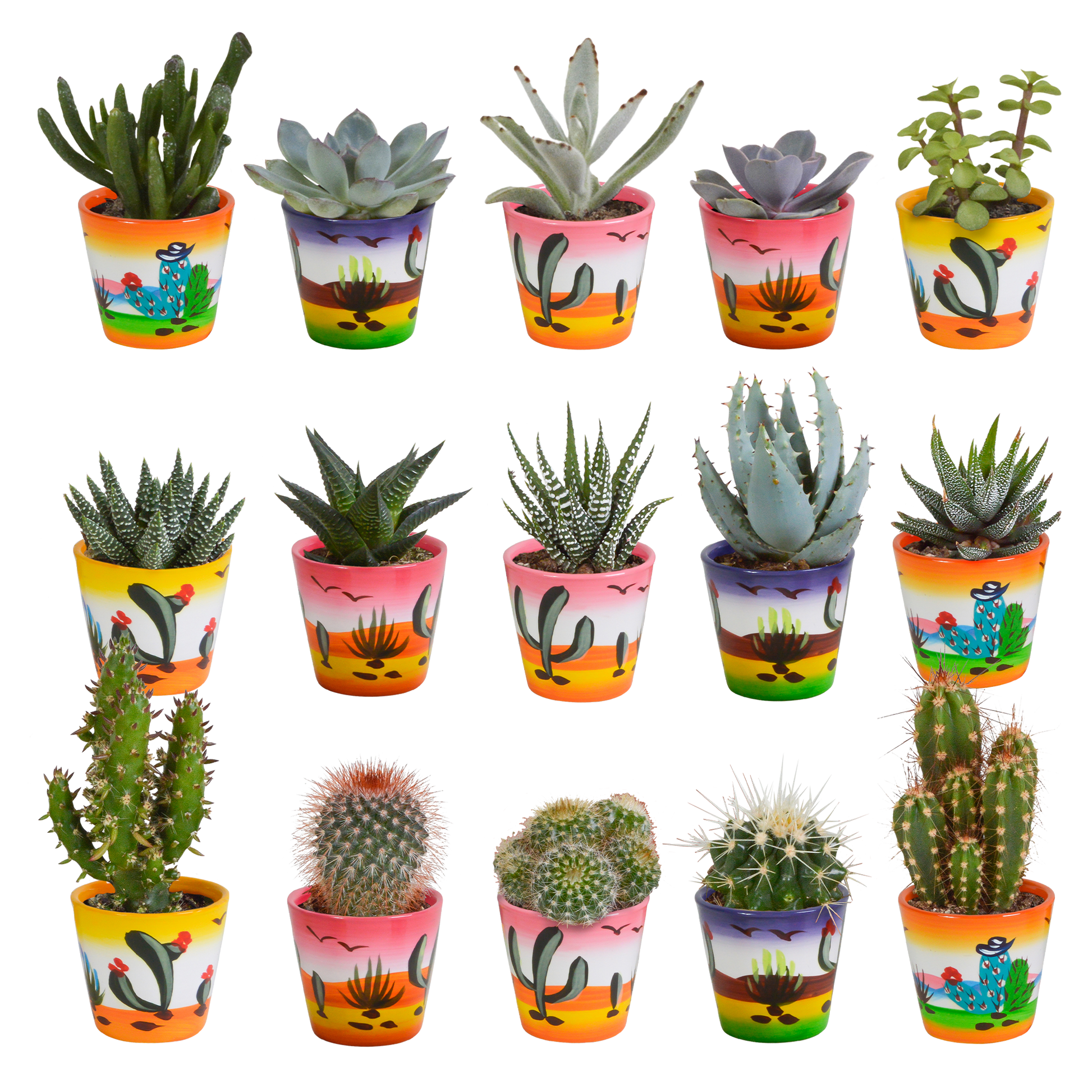 Cactus en vetplanten Mischung 5,5 cm | 15 stück - in Mexicaanse pot