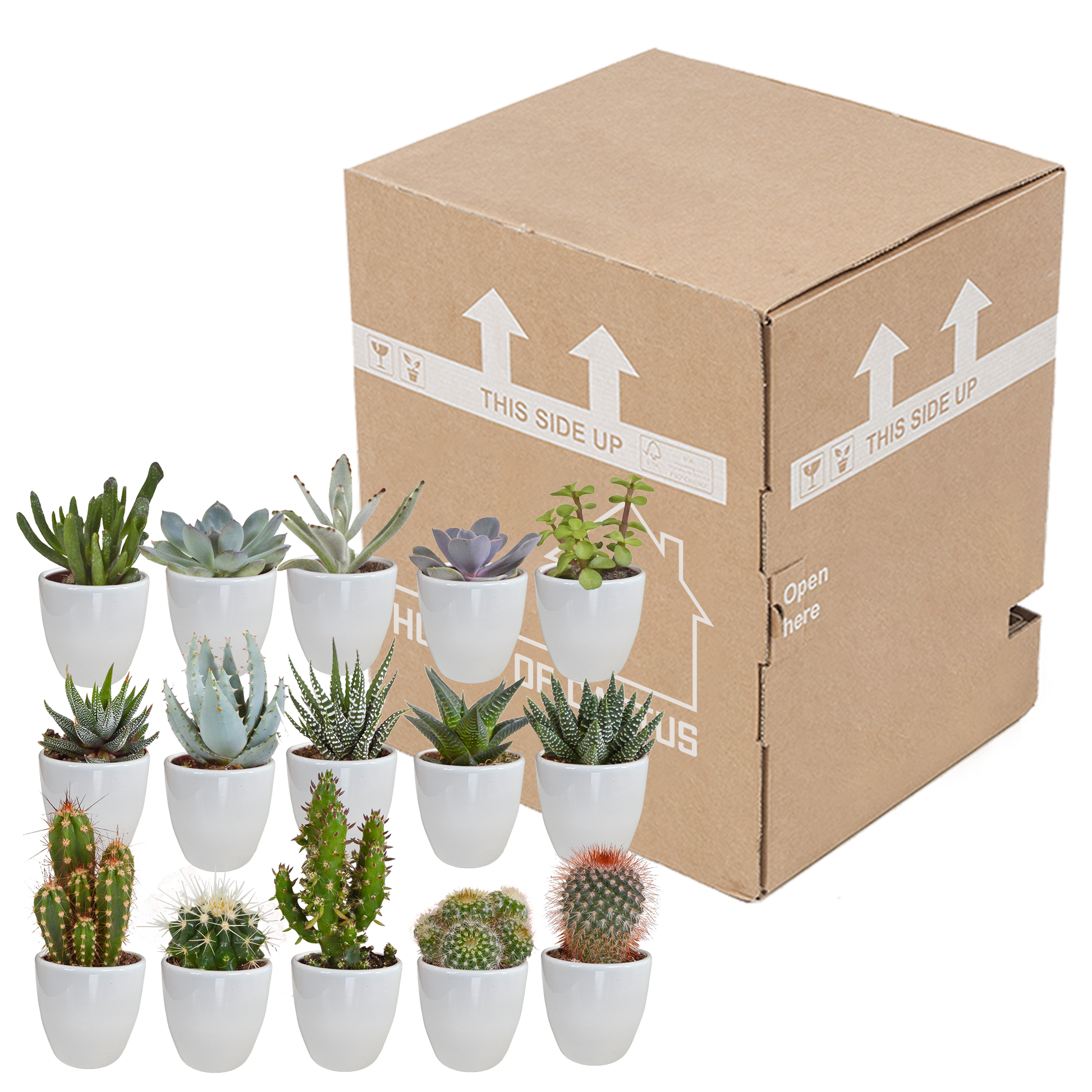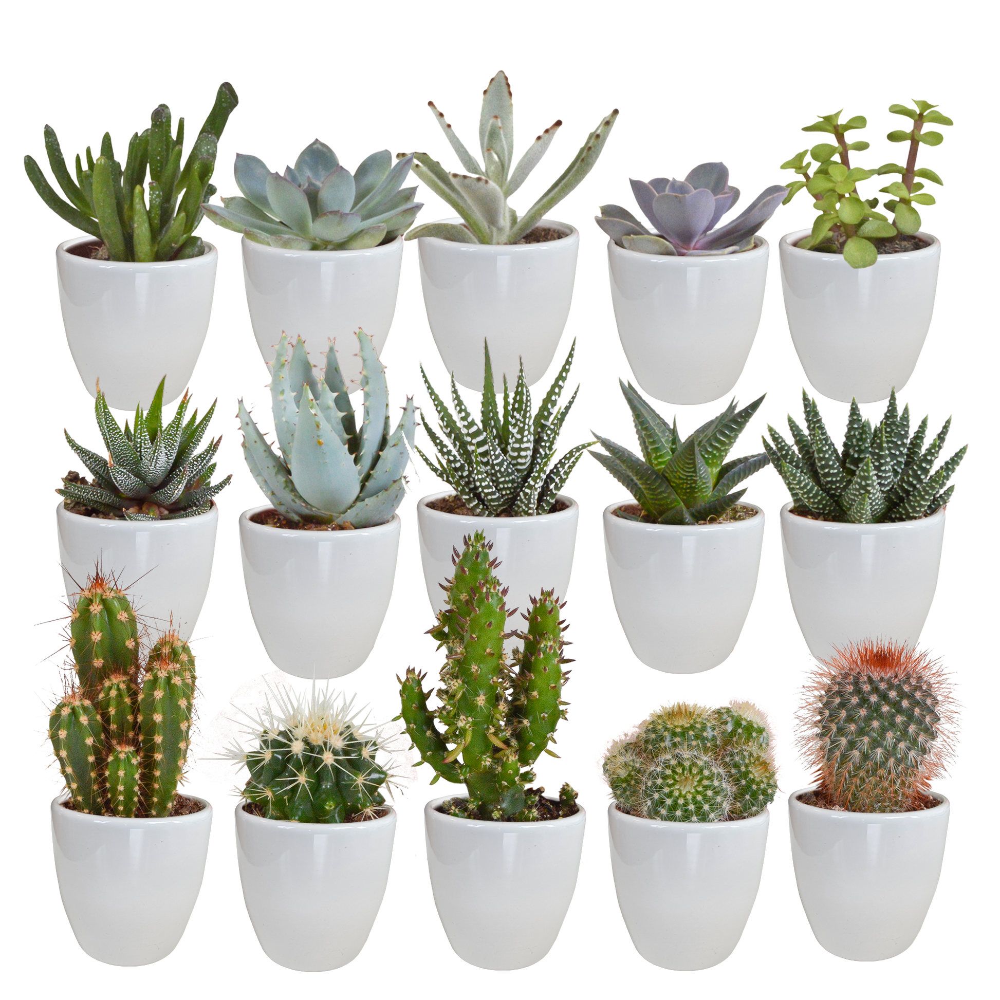 Cactus en vetplanten Mischung 5,5 cm | 15 stück - in witte pot