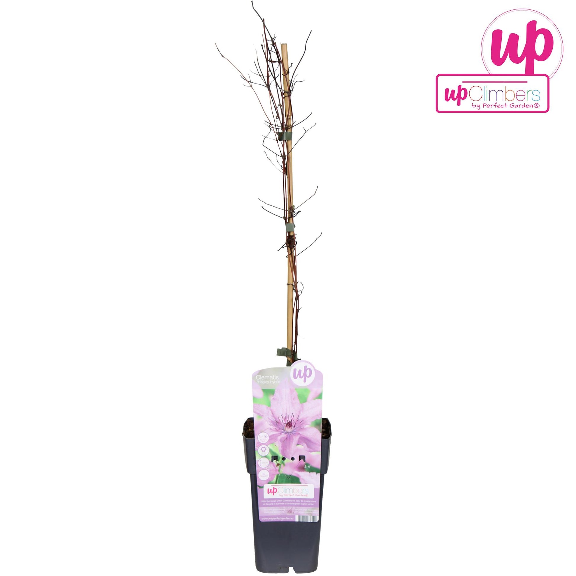 - Die Clematis Hagley Hybrid ist eine Kletterpflanze mit großen, auffälligen Blüten in sanftem Rosa bis Flieder.