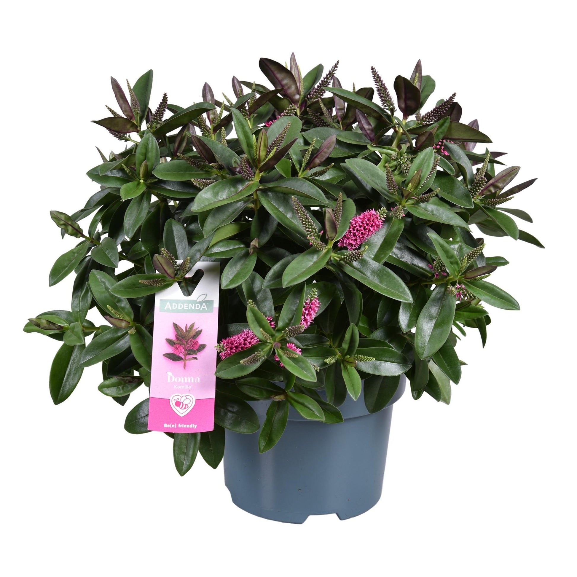 Die Hebe 'Hebedonna Kamilla' ist eine ausgezeichnete Wahl für alle, die eine unkomplizierte und zugleich attraktive Zimmerpflanze suchen. Sie bringt Farbe und Leben in jeden Raum – ob Büro, Wohnzimmer oder Balkon.