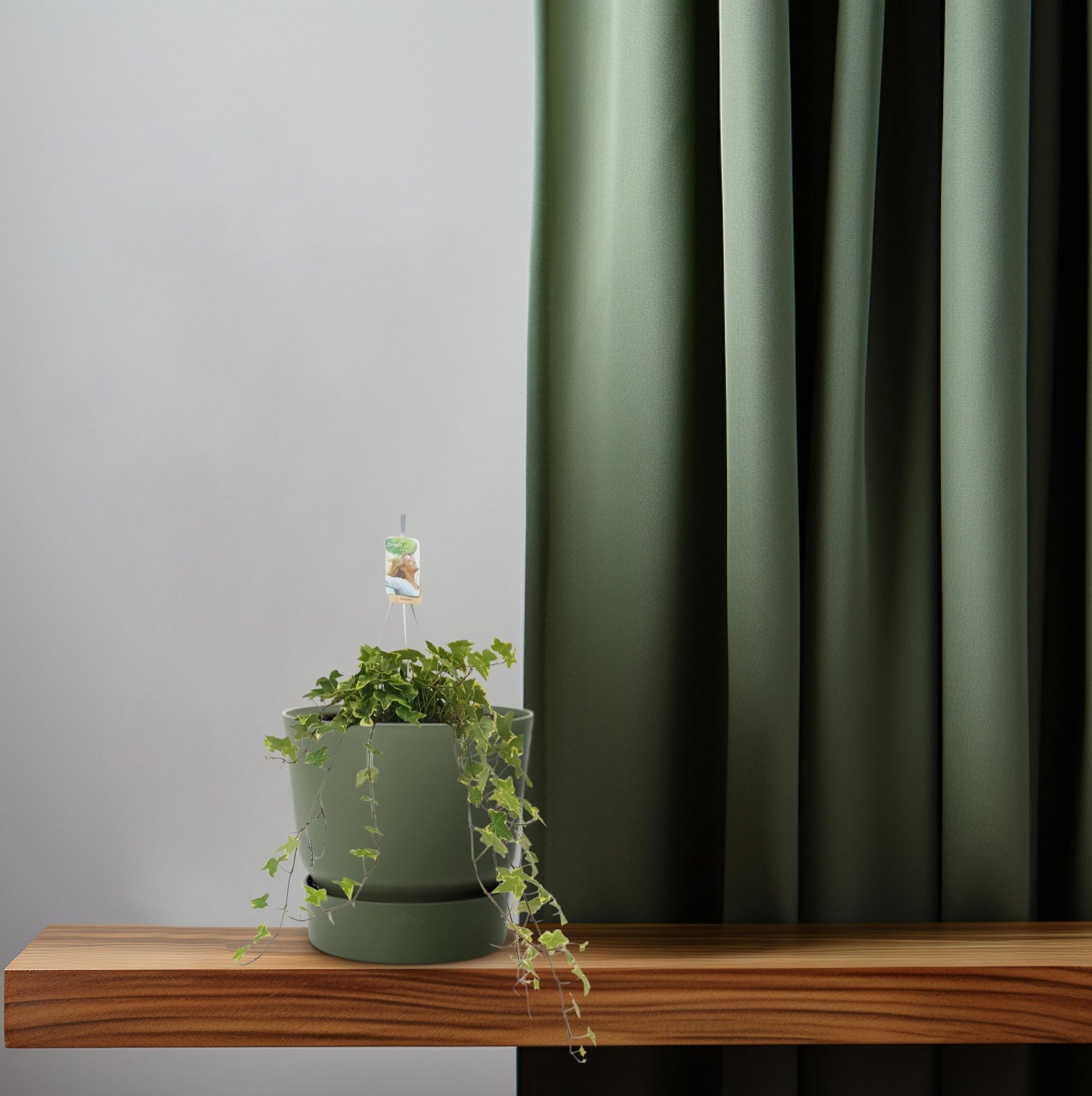 Hedera, auch bekannt als Efeu, ist eine beliebte Zimmerpflanze, die aufgrund ihrer üppigen, herabhängenden Ranken und ihrer Fähigkeit, die Luft zu reinigen, geliebt wird. Ursprünglich stammt diese schöne Pflanze aus den Wäldern Europas, Asiens und Nordafrikas und eignet sich hervorragend für den Innenanbau. Sie gedeiht am besten unter mittlerem bis hellem Licht und ist eine ideale Ergänzung für jeden gut beleuchteten Raum. Hedera ist in gemäßigten Regionen heimisch, wo sie an Bäumen klettern oder am Boden entlang wachsen kann. Mit ihren charakteristischen gelappten Blättern und ihrer kletternden Natur passt sie sich mühelos verschiedenen Umgebungen an. Efeu hat die Fähigkeit, Schadstoffe aus der Luft aufzunehmen und zu filtern, wodurch er eine ausgezeichnete Wahl für diejenigen ist, die die Luftqualität in Innenräumen verbessern möchten. Mit der richtigen Pflege und regelmäßigem Beschneiden kann Efeu eine atemberaubende und nützliche Ergänzung für jedes Zuhause oder Büro sein. Hedera, allgemein bekannt als Efeu, gedeiht an einem Standort mit teilweisem Schatten und sollte einmal pro Woche bewässert werden. Es bevorzugt gut durchlässigen Boden, wie eine Mischung aus Blumenerde und Perlit. Was die Düngung betrifft, wird empfohlen, die Pflanze einmal im Monat während der Frühlings- und Sommermonate zu düngen. Verwenden Sie dazu einen ausgewogenen flüssigen Dünger, der auf halbe Stärke verdünnt wird. Denken Sie daran, dass Efeu eine pflegeleichte Pflanze ist, die mit der richtigen Pflege und Aufmerksamkeit jeden Raum mit grünem Flair bereichert. Efeu wird aufgrund seiner hängenden Ranken und üppig grünen Blätter häufig als Zierpflanze im Innenbereich verwendet. Es wird oft eingesetzt, um Innenräumen wie Häusern, Büros und Restaurants eine Note natürlicher Schönheit und Eleganz zu verleihen. - Die Efeupflanze wird in einer praktischen Größe von 17 cm geliefert, perfekt für jeden Innenraum. - Mit einer aktuellen Höhe von etwa 35 cm verleiht diese Efeupflanze jedem Raum eine elegante Note. - Diese Efeupflanze gedeiht an einem Ort mit teilweisem Schatten und ist daher eine ideale Wahl für Bereiche mit weniger direktem Sonnenlicht. - Die Pflege von Efeu ist ein Kinderspiel, da er minimalen Aufwand erfordert und für seine Widerstandsfähigkeit bekannt ist. - Mit ihren üppigen, hängenden Blättern verleiht die Efeupflanze jeder Inneneinrichtung eine natürliche Schönheit.