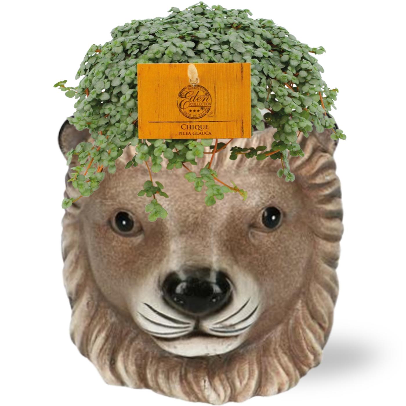 Pilea Glauca mit braunem Leeuw Übertopf Ø11cm