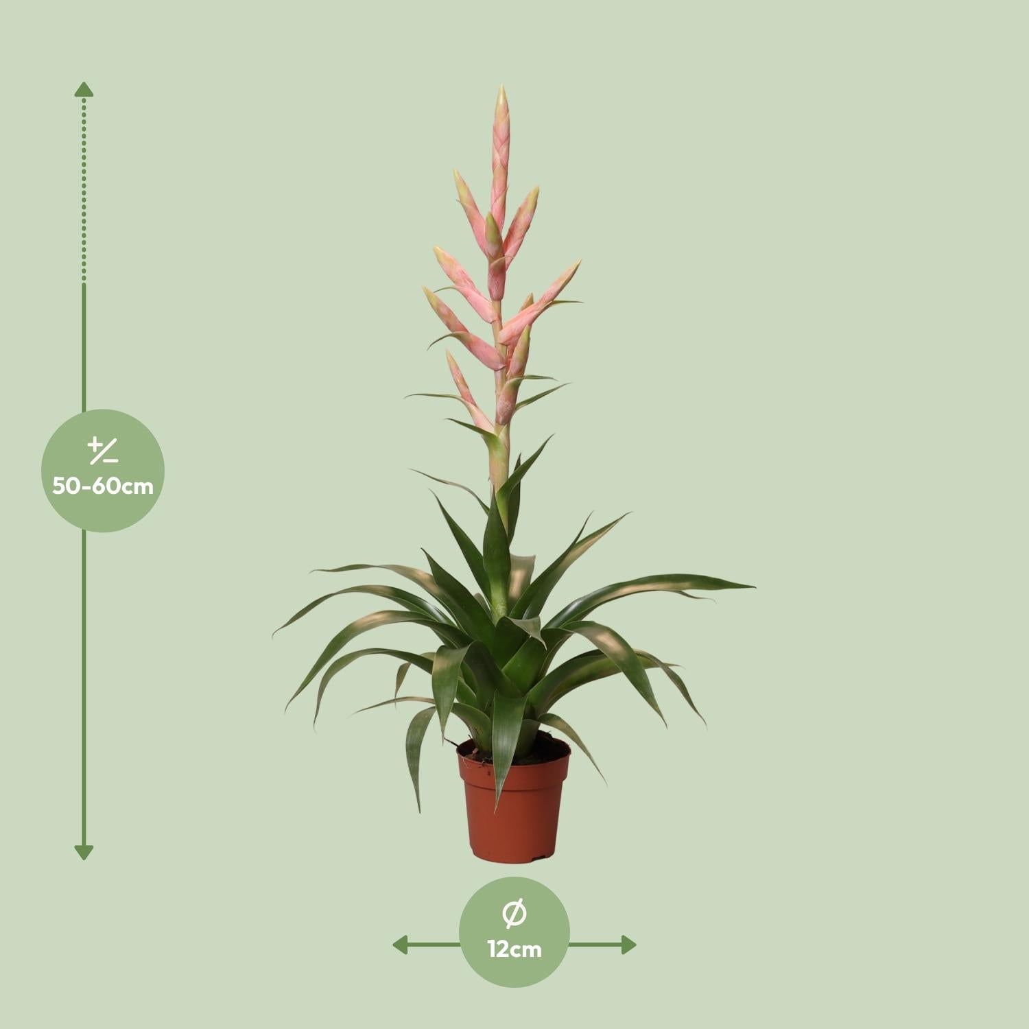 Mit einer kompakten Topfgröße von 12 cm und einer beeindruckenden Höhe von ca. 60 cm bringt die Tillandsia Dolce natürliche Eleganz in jeden Raum. Ihre auffälligen, farbenfrohen Blüten in Lila-, Rosa-, Rot- und Orangetönen blühen mehrere Wochen und setzen lebendige Akzente in Ihrem Zuhause oder Büro.