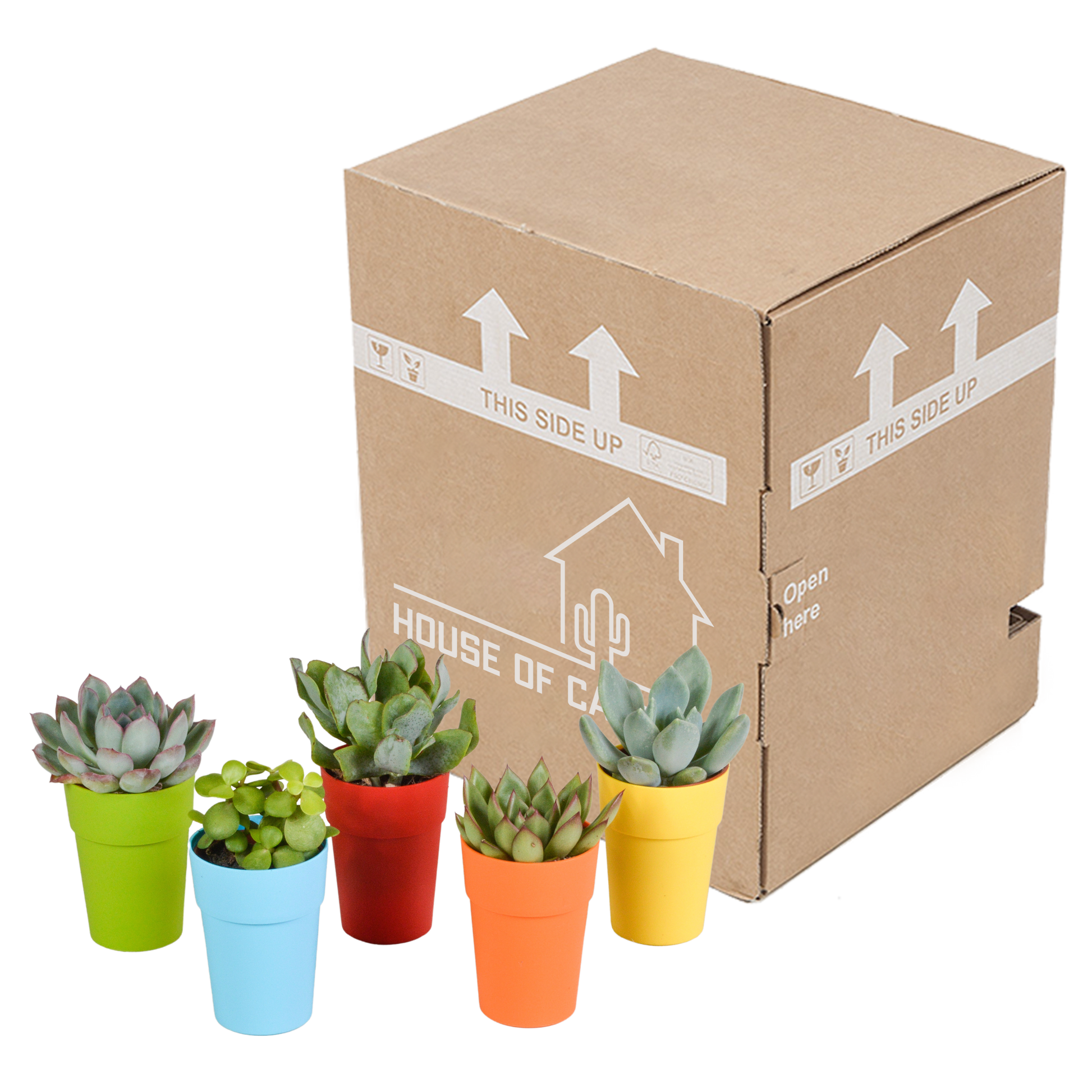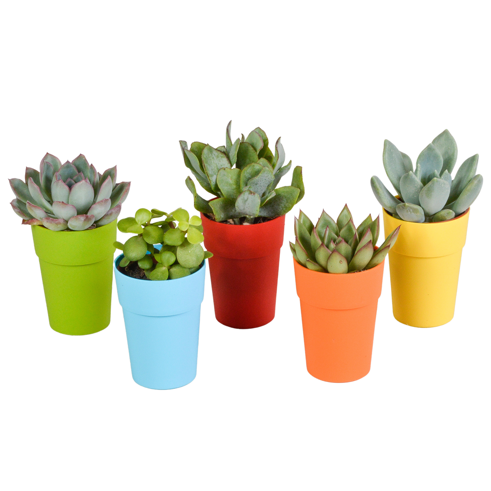 Vetplanten-Mischung 5er Set in farbigem Kunststofftopf